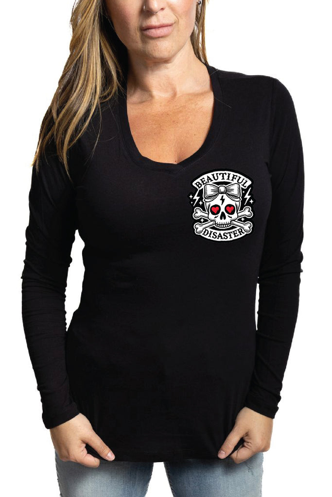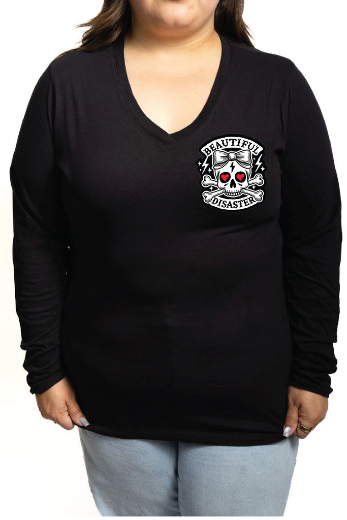 The ultra-soft fabric hugs you just right, and the tear-drop V neckline adds a subtle edge of femininity. Whether you're layering it up or rocking it solo, this long sleeve feels as powerful as it looks.