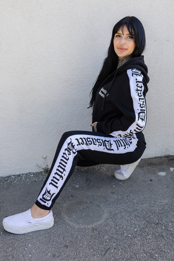 Made with soft fleece and designed for a relaxed, flattering fit, this hoodie features custom side panels with Beautiful Disaster repeating down each sleeve. The front is finished with a premium embroidered Beautiful Disaster logo on the chest — adding a touch of elevated detail that sets this piece apart.