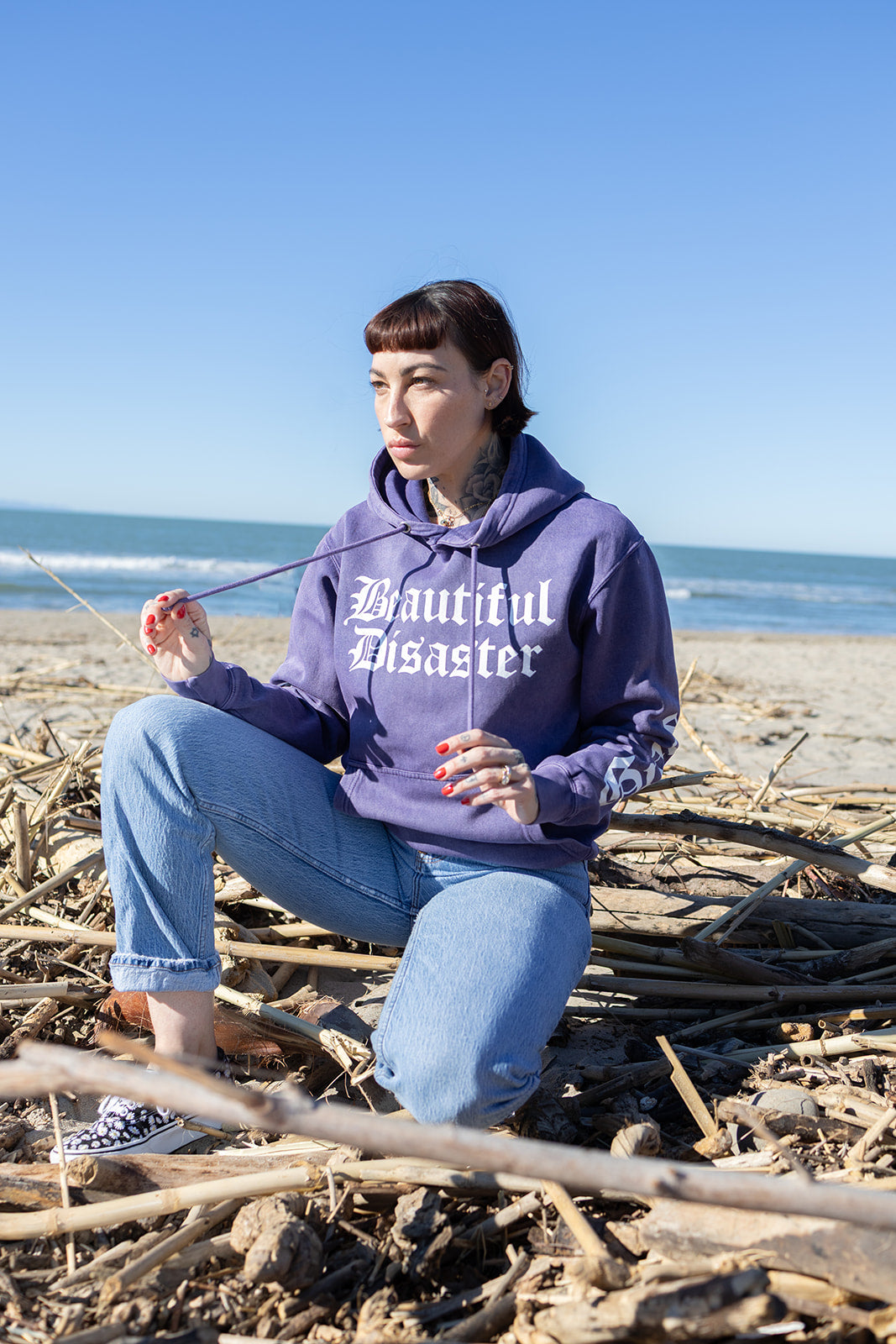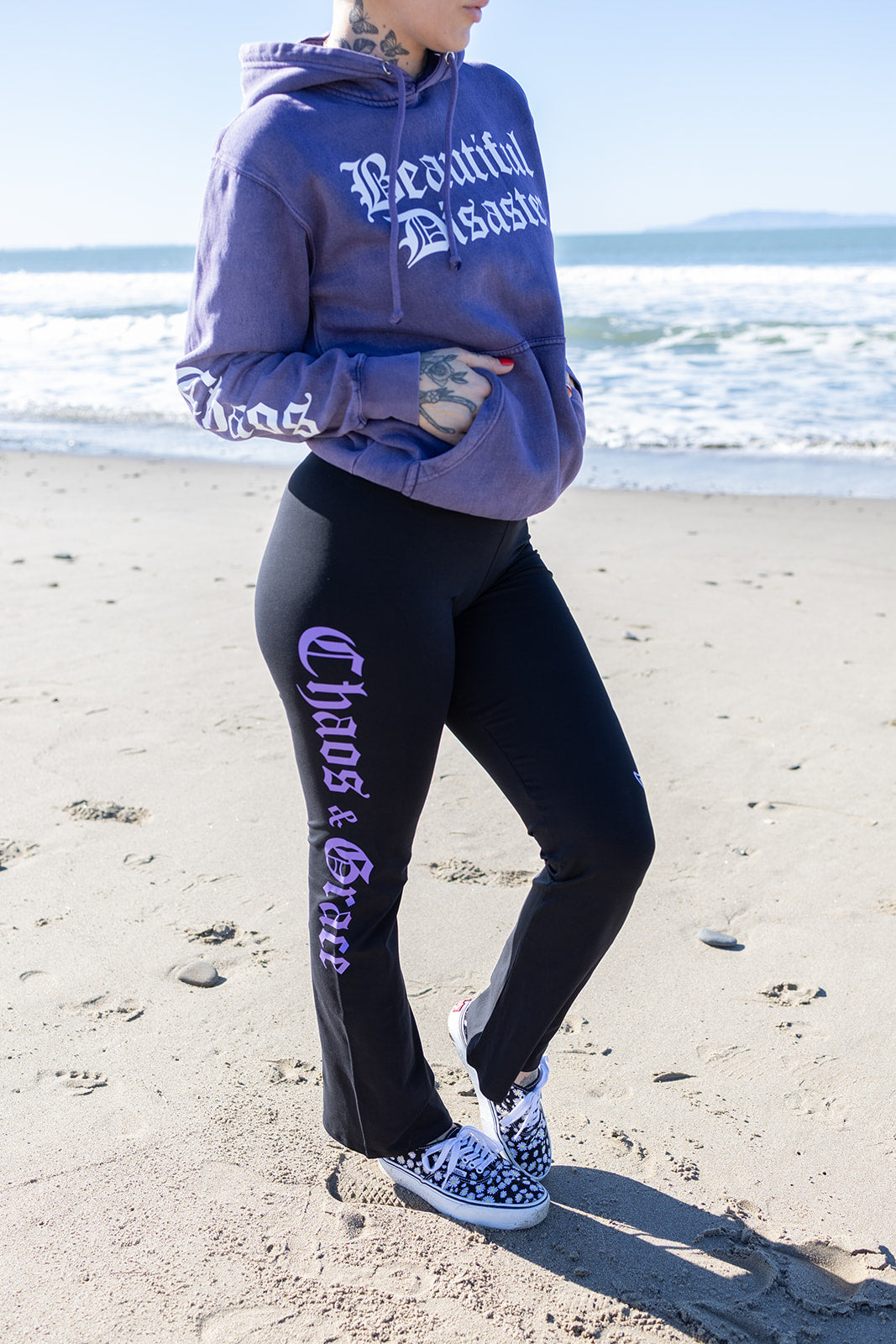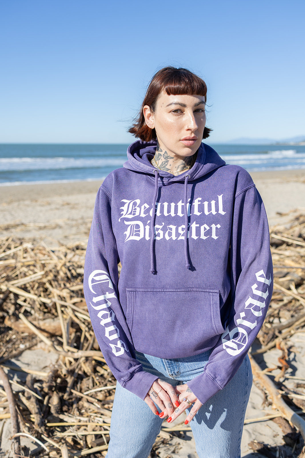 This ultra-soft mineral wash hoodie features our signature paisley mermaid art on the back, wrapped in the words Beautiful Disaster, Chaos & Grace . Bold sleeve prints and a front logo make this piece a full-on vibe from every angle.