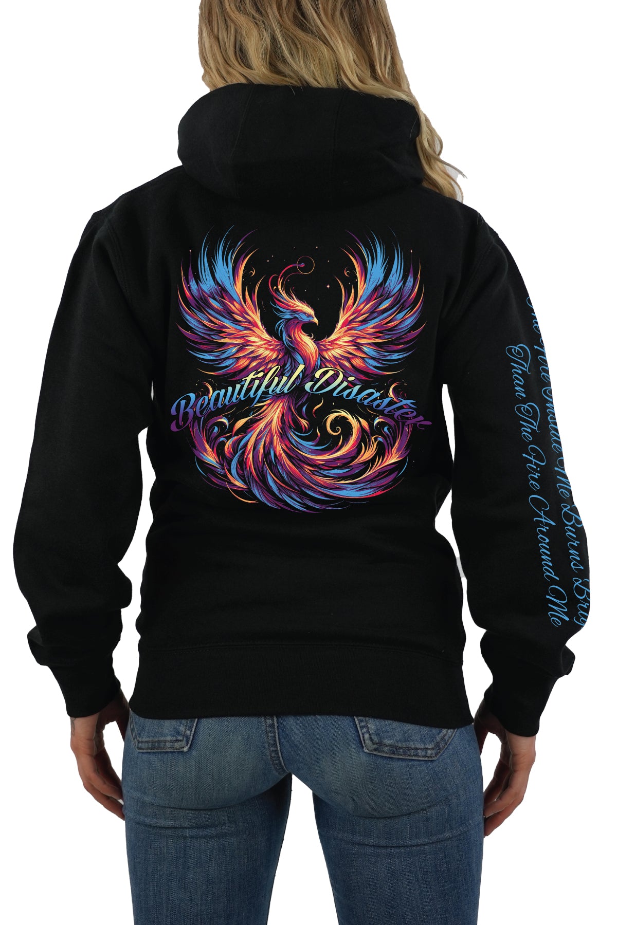 With its bold and vibrant phoenix design in striking reds, golds, and blues, this hoodie isn’t just cozy—it’s a statement of your unstoppable inner power. Perfect for staying warm while showing the world your fire burns brighter.