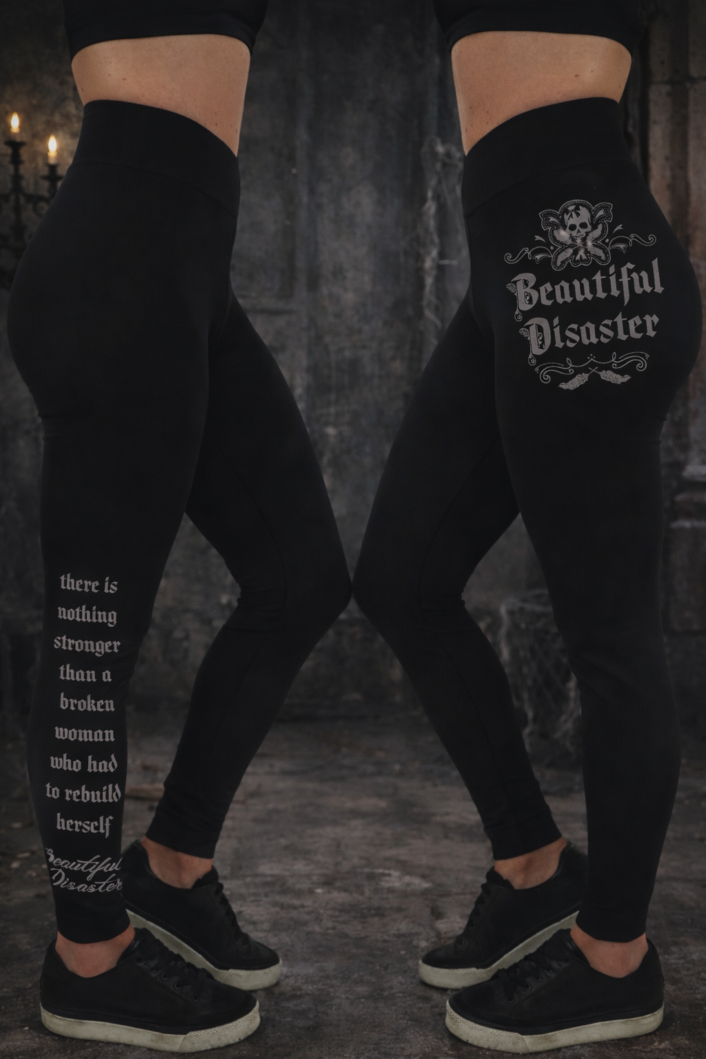 Our You Don’t Know My Story Leggings honor every woman who has rebuilt herself from the ground up. Featuring the Beautiful Disaster emblem on the hip and the empowering quote: